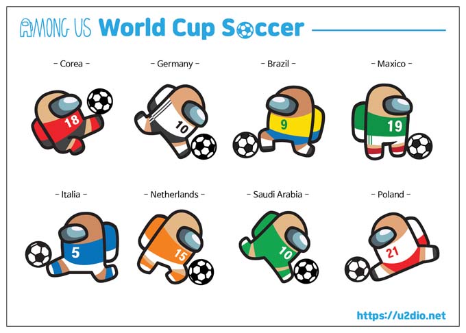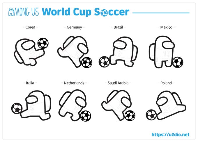Download this fun Among us World Cup Soccer coloring book for free and enjoy at home