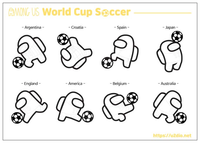 Download this fun Among us World Cup Soccer coloring book for free and enjoy at home with your family or friends.