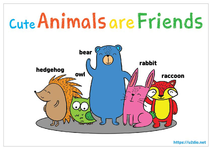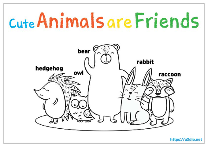 Coloring Book Animal Friends are bear, hedgehog, owl, rabbit, and raccoon. They are very